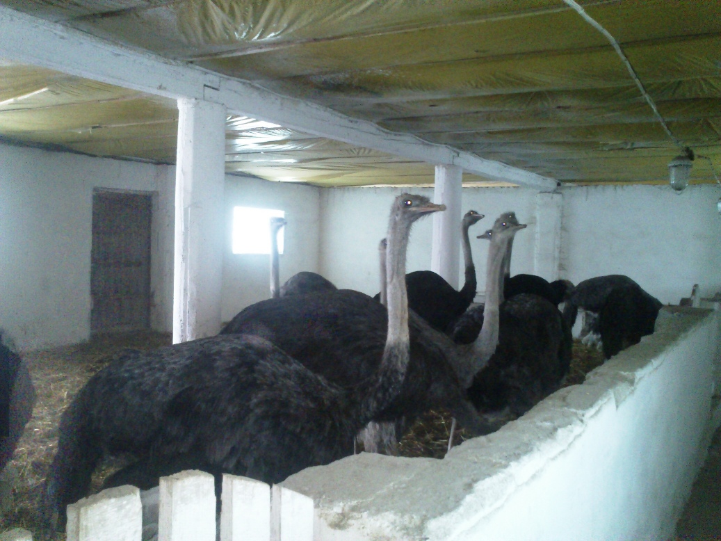 Ostriches are very strong and fast birds, they can run during 20 minutes on speed in 50 km/hr! Have you ever heard that ostriches hide their head in sand when they're scared? It's myth! If they're scared they start running fast, though ostriches forget the reason of their fear fast the same way. We were told an interesting story about this fact. In the silent morning ostriches were scared by noise made by a car passing by. They started running on farm workers... Only because of flashlight on held by the workers ostriches have recovered, calmed down a little and stopped running, and people stayed alive! Ostriches may be 2.5 m tall and 150 kg of weight!
